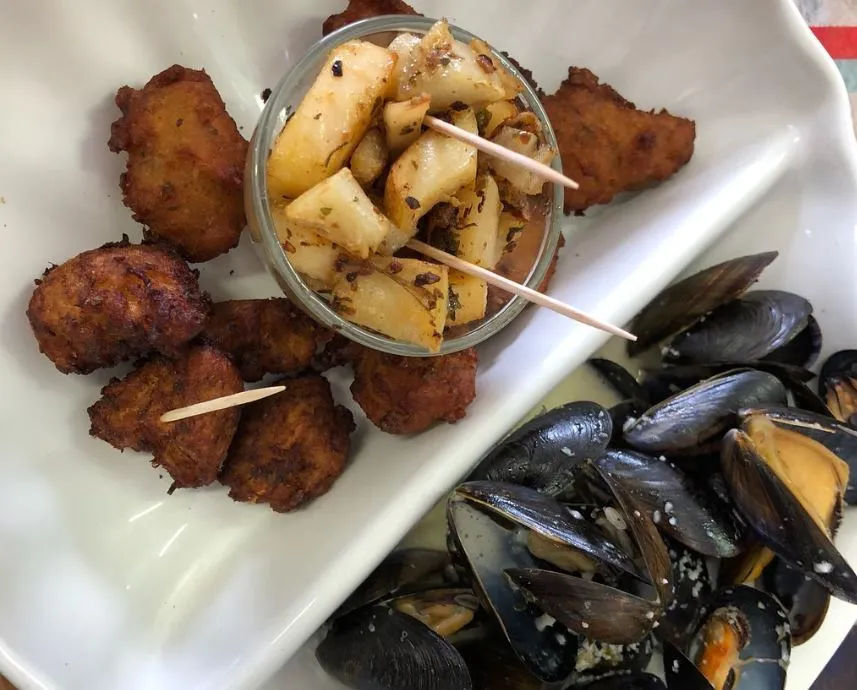 Accras de mulet ou de dorade, poêlée de seiche, moules.